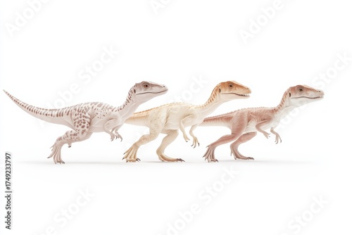© Katya, Fototapeta premium Realistic dinosaur models lineup showcasing detailed features and textures