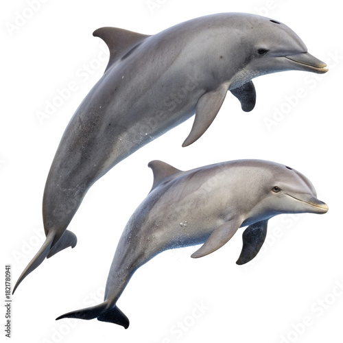 © Shahnaj, Fototapeta premium Realistic Dolphins with Smooth Gray Skin and Fins