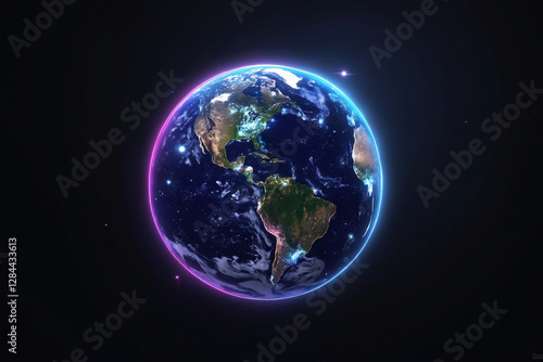 Fototapeta premium Realistic Earth from Space, High-Resolution Night View