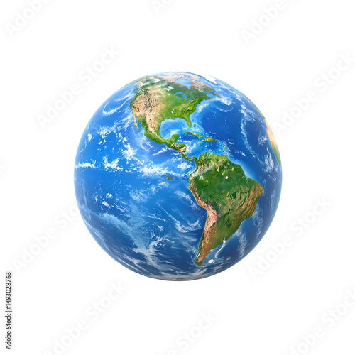 © Alva, Naklejka premium Realistic Earth globe view showing Americas with ocean, clouds, and swirling atmosphere.