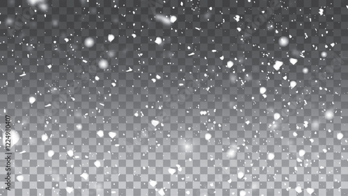 © Creative, Fototapeta premium Realistic falling snow with snowflakes and clouds. Vector heavy snowfall,