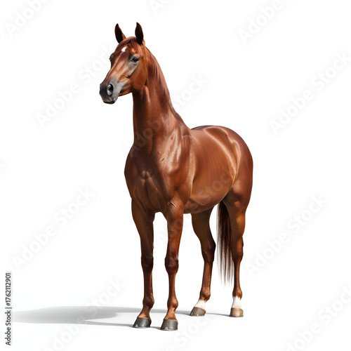 © Shimul, Obraz premium Realistic Full-Body Black Horse on White Background | High-Resolution Natural Animal Photography | Elegant Horse Studio Shot