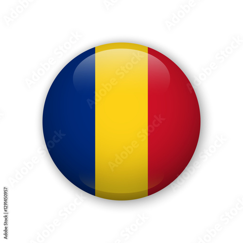 Fototapeta premium Realistic glass button with flag of Romania 3d vector element with shadow For mobile apps UI and web