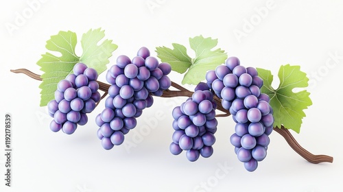 © Ronnakrit, Fototapeta premium Realistic Grapes Cluster with Leaf on a White Background