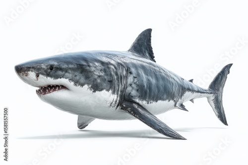 Naklejka premium Realistic Great White Shark Swimming in Clear Blue Water Environment