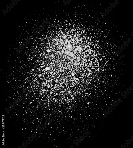Obraz premium Realistic grunge graffiti spray paint effect on the black background. Isolated white ink texture.