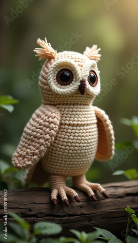 © Lzanne Studio, Fototapeta premium realistic highly detailed crochet of a owl with a nature background