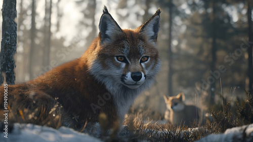 Fototapeta premium Realistic Illustration Foxes in Snowy Winter Forest