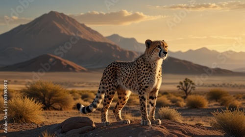 © Lycee, Obraz premium realistic illustration of a cheetah in the savannah