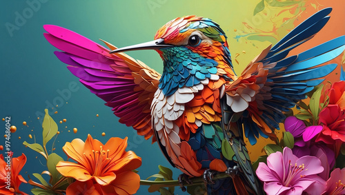 Obraz premium Realistic Illustration of a Colorful Hummingbird