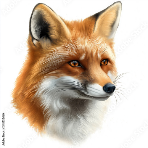 Fototapeta premium Realistic Illustration of a Fox Head with Orange Fur and White Accents
