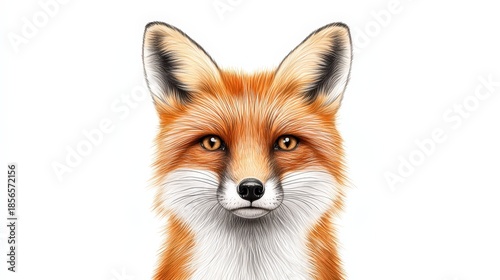 © Rinowz, Fototapeta premium Realistic Illustration of a Fox with Orange Fur and Intense Eyes on a White Background