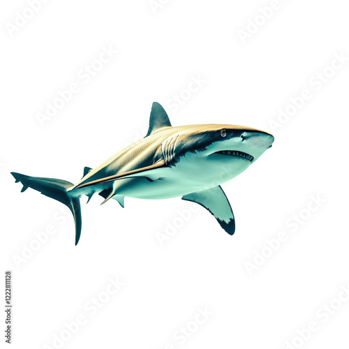© Uwe, Fototapeta premium Realistic illustration of a great white shark in profile view, isolated on a transparent background. Ideal for marine life, ocean themes, and educational designs.