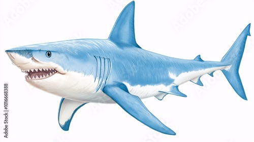 © Pojjanee, Naklejka premium Realistic illustration of a great white shark swimming