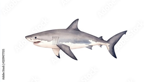 © Studio, Naklejka premium Realistic illustration of a great white shark swimming in a clear ocean, showcasing marine life