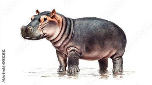 © Naphol, Obraz premium Realistic illustration of a hippopotamus on a white isolated background.