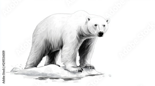© Yaowarat, Obraz premium Realistic Illustration of a Polar Bear Standing on Iceberg