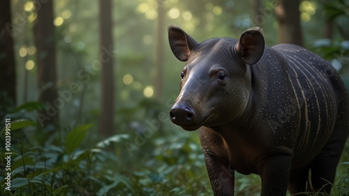 © Lycee, Fototapeta premium realistic illustration of a tapir in the forest, tapir is an endangered animal