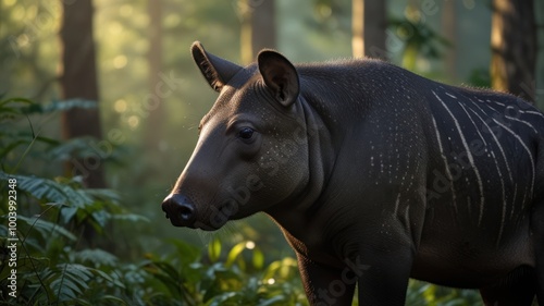 © Lycee, Fototapeta premium realistic illustration of a tapir in the forest, tapir is an endangered animal