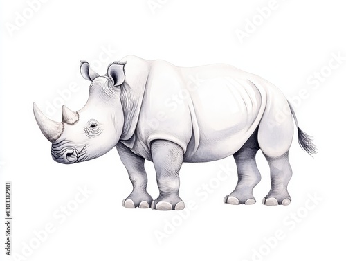 Obraz premium Realistic illustration of a white rhinoceros standing on a plain background