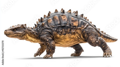 Obraz premium Realistic illustration of an armored, prehistoric dinosaur on a white...