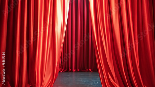 © Oksana_Latysheva, Fototapeta premium Realistic illustration of red theatre curtain. Stage With Red Curtain