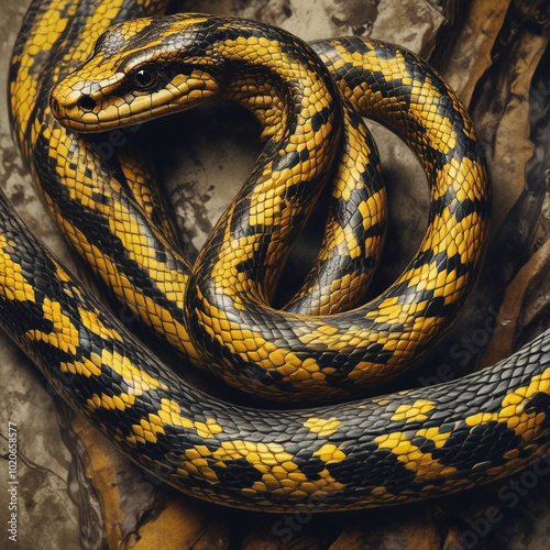 © BetiBup33, Fototapeta premium Realistic illustration of snake body with shiny skin patern.