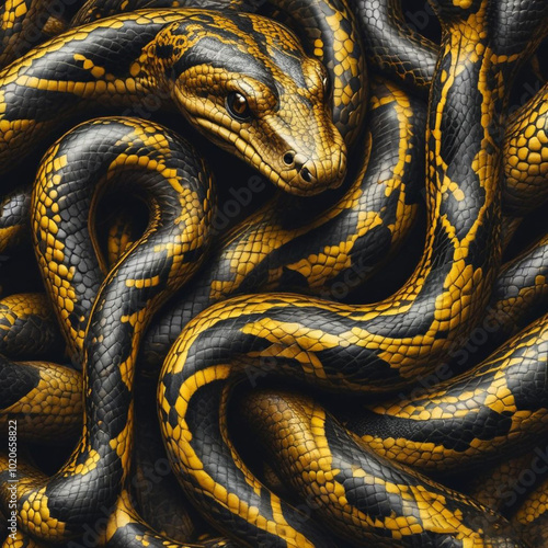 © BetiBup33, Fototapeta premium Realistic illustration of snake body with shiny skin patern.
