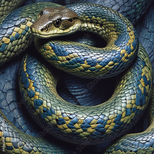 © BetiBup33, Fototapeta premium Realistic illustration of snake body with shiny skin patern.