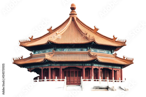 © Justins, Fototapeta premium Realistic Image of Ornate Asian Pagoda Architecture with Traditional Design and Cultural Significance Clear Sky Background
