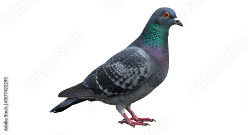 Naklejka premium Realistic isolated pigeon on white background showing colorful neck feathers...