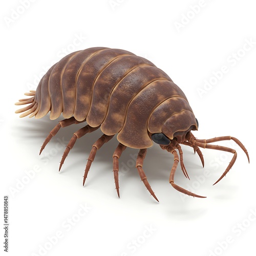 © Oktaf, Obraz premium Realistic Isopod Pill Bug Woodlouse On White Background Detailed Close-Up