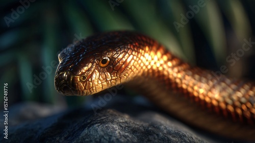 Fototapeta premium realistic king cobra in defensive pose, detailed scales and natural jungle...