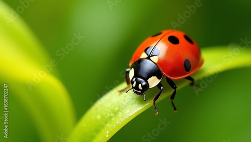 Fototapeta premium "Realistic Ladybug Illustration Highlighting Red Shell and Black Spots"