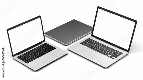 © Tahir, Fototapeta premium Realistic laptop mockup featuring a blank screen isolated on a white background, offering various perspectives and views.