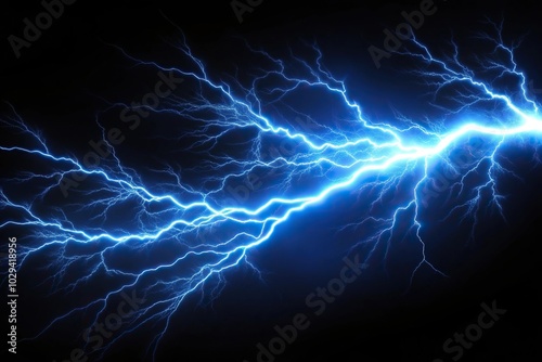 © methinee, Fototapeta premium Realistic lightning effect with blue light on black background