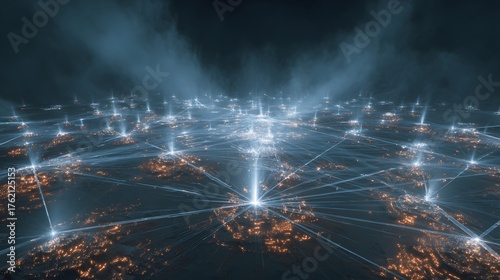 © Warakorn, Obraz premium realistic local network hub glowing with encrypted signals