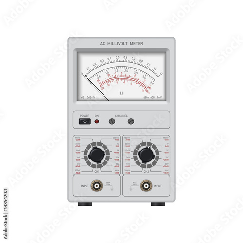 © Konstantin Batrakov, Fototapeta premium Realistic millivoltmeter with dial indicator. Device for measuring voltage. Vector illustration.