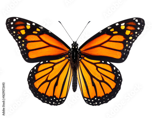 © Shamim, Fototapeta premium Realistic Monarch Butterfly with Open Wings, Top View, Isolated on Transparent Background