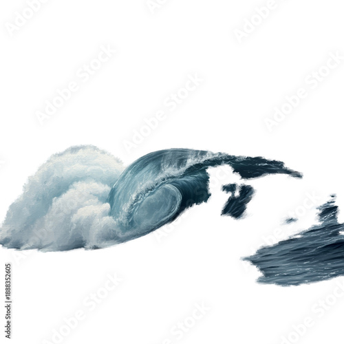© IvanL, Fototapeta premium Realistic Ocean Wave Crashes Misty Blue Sky