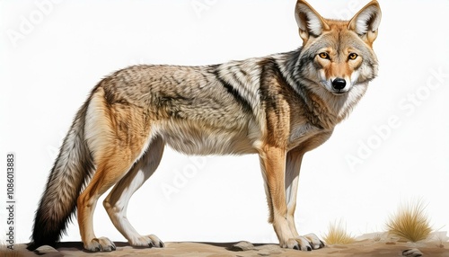 Fototapeta premium realistic of a coyote standing alert with white background for easy...