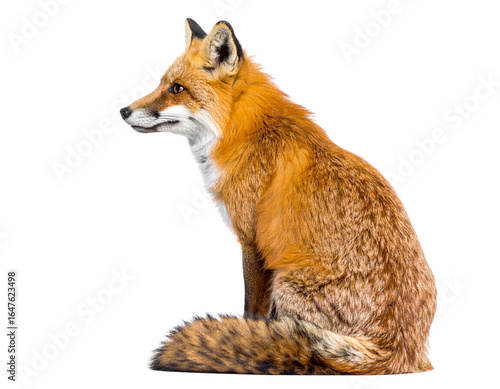 © MdSabbir, Fototapeta premium Realistic Orange Fox Sitting Calmly, Side View, Isolated on White Background