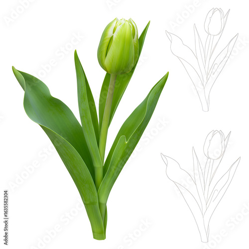 © KarenJ, Obraz premium Realistic Photo Green Tulip Isolated on White Background Fresh Bloom Display
