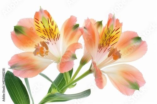 Fototapeta premium Realistic photograph of a complete Alstroemeria,solid stark white background,...