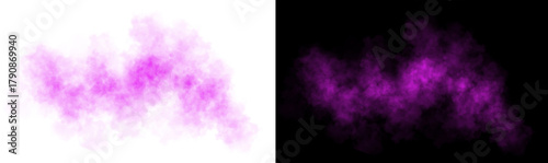 © siaminka, Fototapeta premium Realistic pink purple smoke cloud with soft edges and transparent texture shown on white and black backgrounds for design use