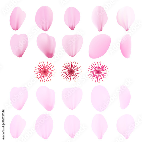 © writerfantast, Fototapeta premium Realistic pink sakura petals icon set. Cherry petals