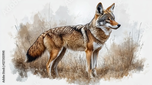 © Wiseman, Fototapeta premium realistic png of a coyote standing alert with transparent background for easy integration into designs