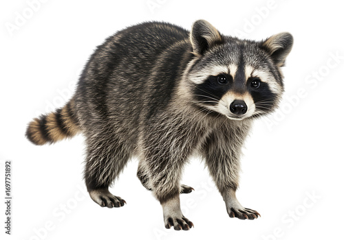 Fototapeta premium Realistic portrait of a curious raccoon Isolated on transparent background