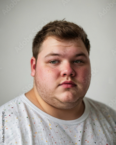 Fototapeta premium Realistic portrait of a young man with extra weight, isolated on a plain white background