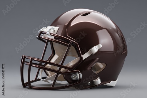 © Ifti Digital, Naklejka premium Realistic portrayal of a simple american football helmet on a neutral backdrop showcasing its sleek design and functionality